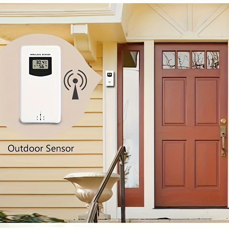 The wireless outdoor sensor allows the weather station to monitor temperature conditions outside the home. This sensor transmits real-time environmental data to the main display unit. Because the sensor operates wirelessly, it can be placed outdoors in a sheltered area such as a balcony, garden space, or exterior wall. Once installed, it automatically sends temperature and humidity data to the indoor display, allowing users to view outdoor conditions instantly.