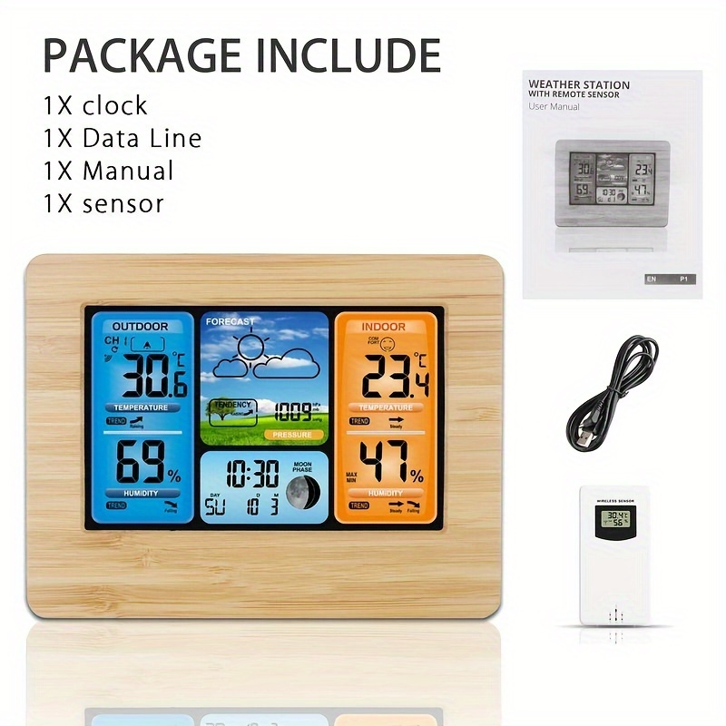 Modern households increasingly rely on digital weather stations to gain a better understanding of environmental conditions that influence daily life. Indoor temperature and humidity can affect comfort levels, energy usage, and overall wellbeing, while outdoor weather conditions determine clothing choices, gardening schedules, and travel plans. This wireless weather station simplifies environmental monitoring by providing real-time information in a single convenient display.