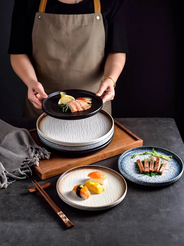 rock pattern Western cuisine plate-Moon White, 8-inch rock pattern Western cuisine plate-dark blue 8-inch rock pattern Western cuisine