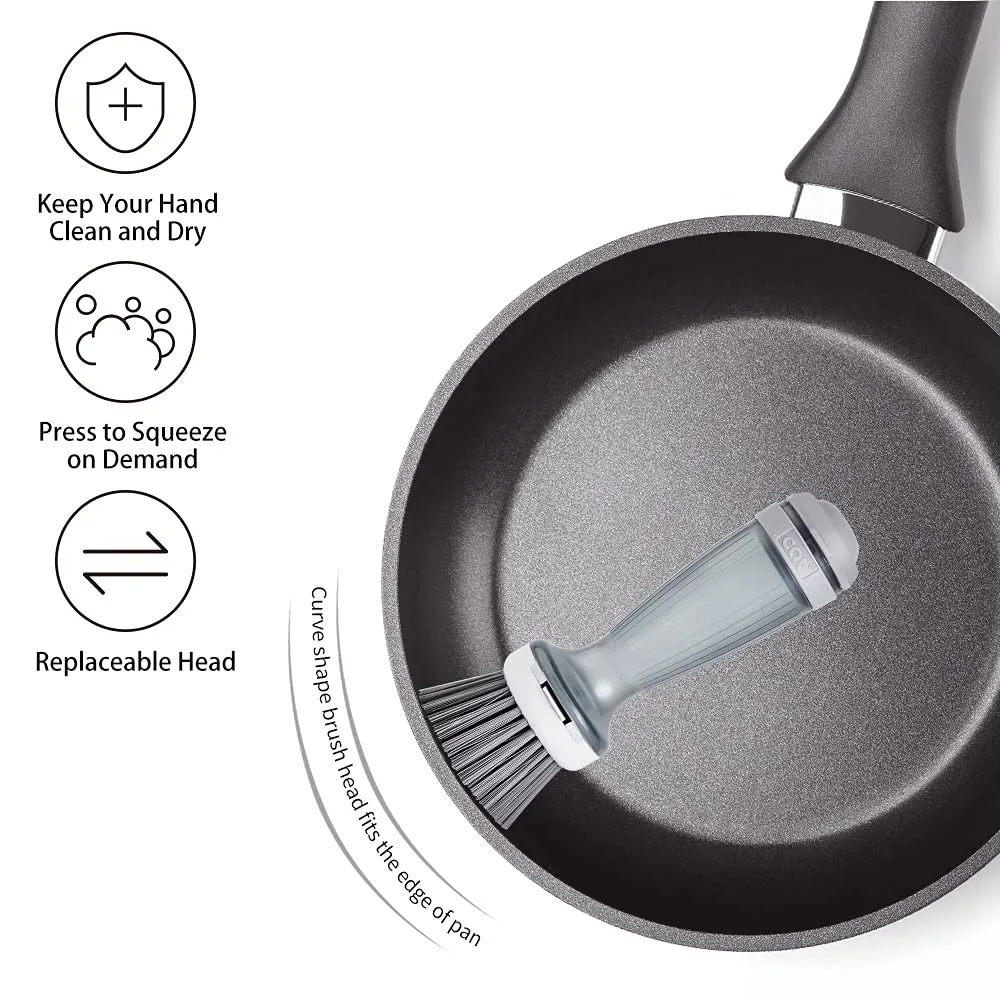 Refill and Replace: The body can be easily filled with your favorite dish soap. The dish brush head can be easily