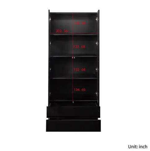 - This display cabinet comes with 4 shelves and 2 draweres, providing ample space for all your necessities and allowing you to view the stored items at a glance.