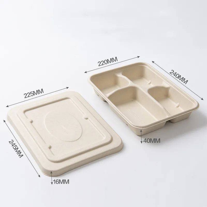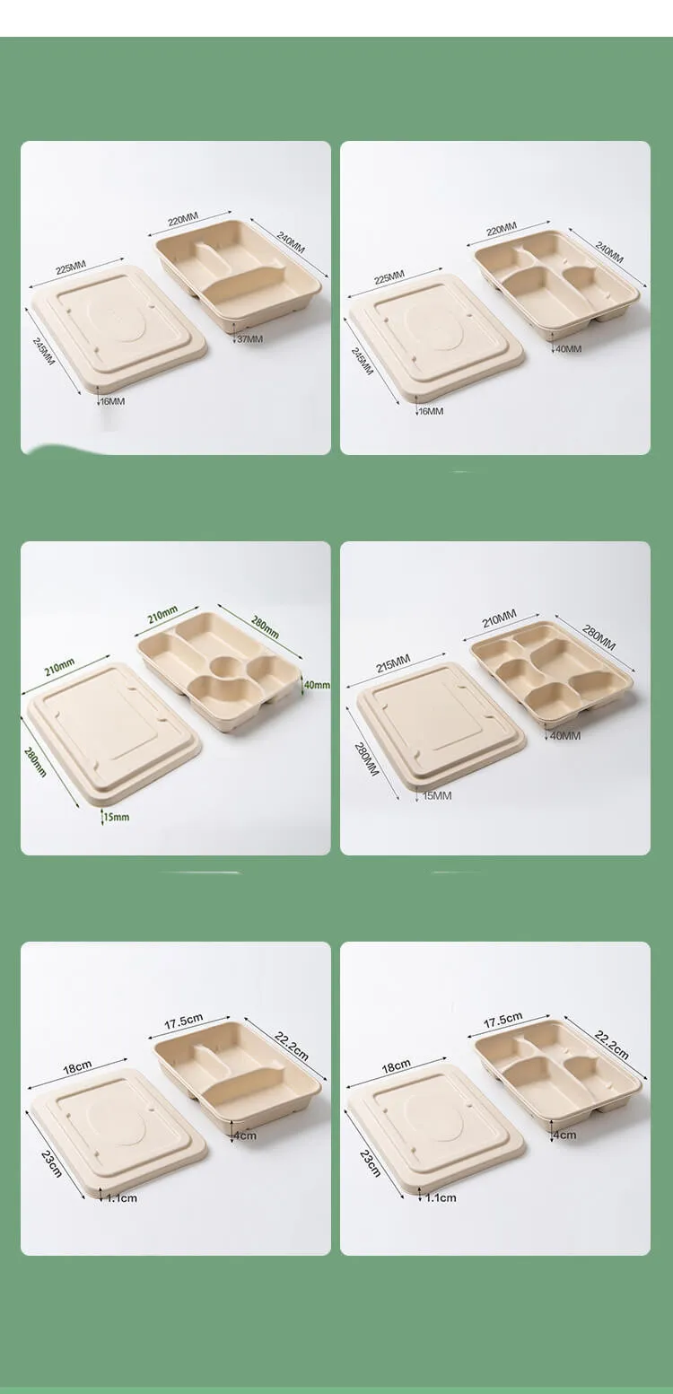 Style 14: Cane Pulp Five Grid Meal Box with Lid
