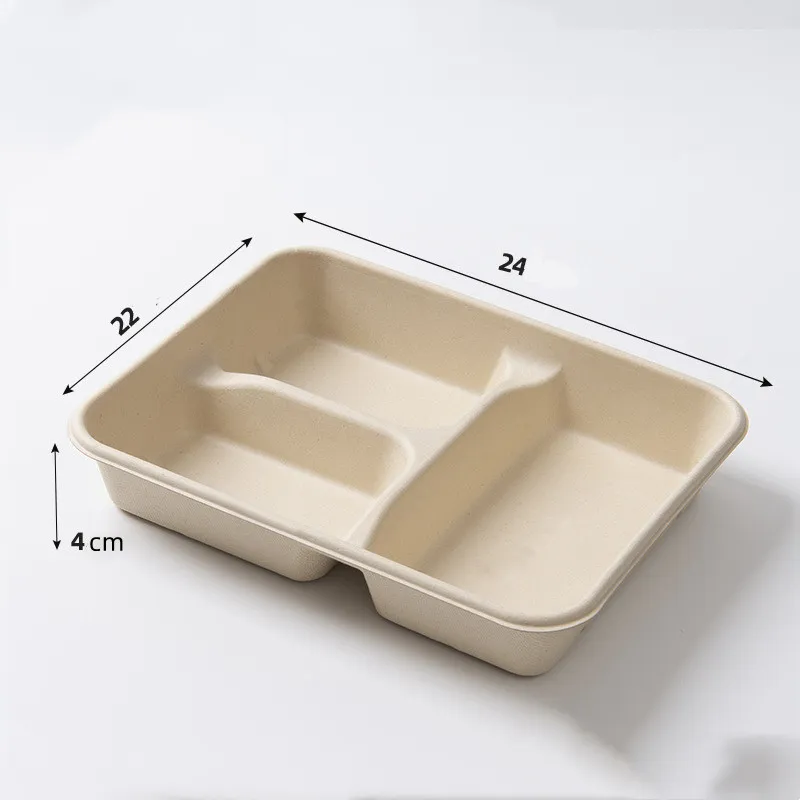 Style 7: Sugarcane Pulp Small Three Grid Box Single Bottom Without Lid