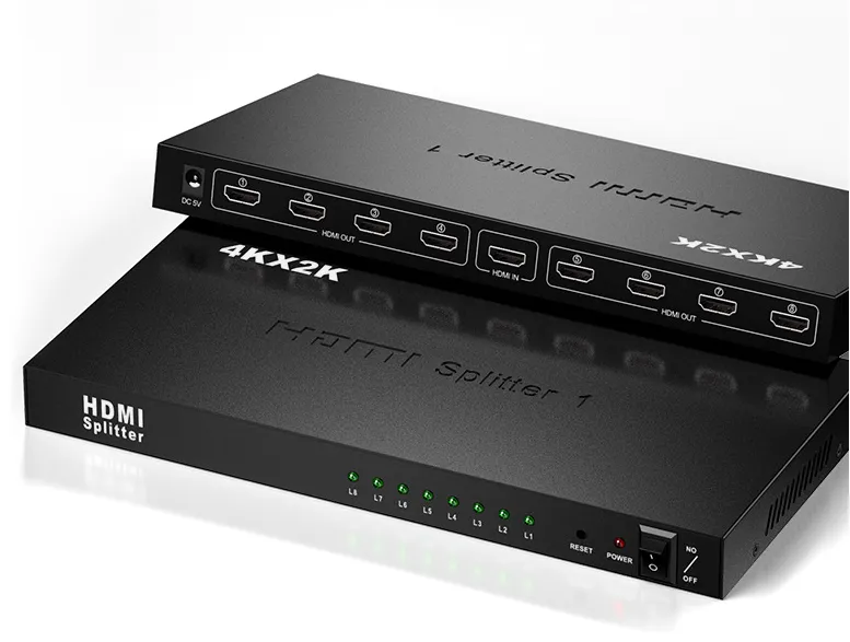 Con 8 salidas HDMI, el divisor HDMI te permite conectar varias pantallas o dispositivos a la vez. Esto lo hace perfecto para mostrar el mismo contenido en varios monitores, televisores o proyectores simultáneamente. Ya sea que esté organizando una conferencia, una exhibición o una configuración de juegos, este divisor proporciona una distribución de señal versátil, lo que garantiza que todas sus pantallas muestren el mismo contenido con una calidad 4K impresionante.