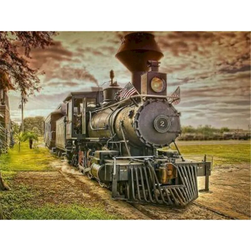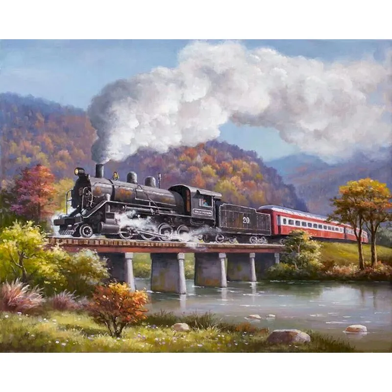 DIY Digital Painting Hand-painted Oil Painting Train Landscape Digital Coloring