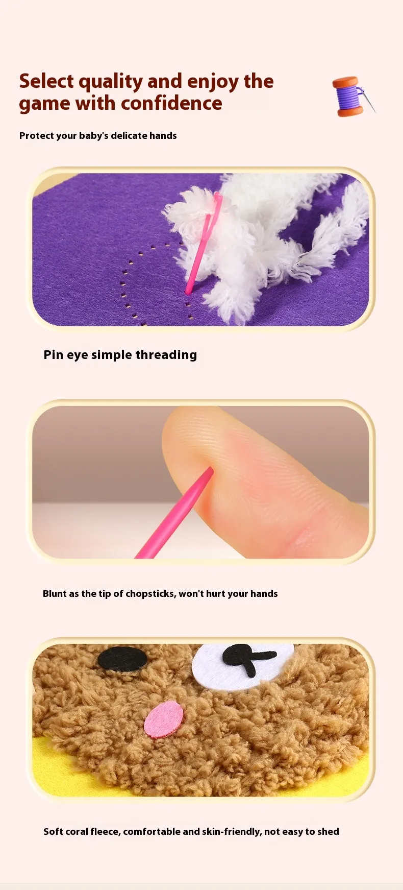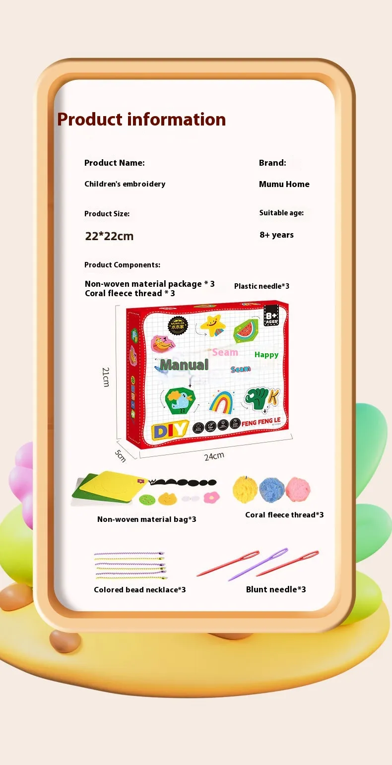 Encourages the development of fine motor skills, patience, concentration, and basic embroidery techniques in an enjoyable format.