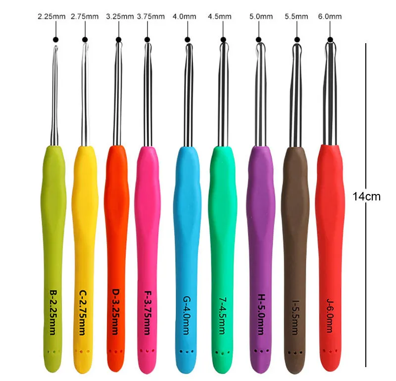 9 aluminum crochets with soft handles +8 lace crochets with blue handles +1 yellow scissors +1 white