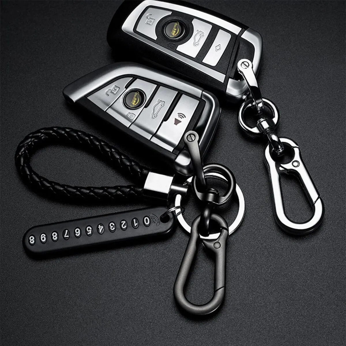 DIY Mobile Number Plate Keychain – Punk Woven Leather Anti-Lost Car Keychain for Men