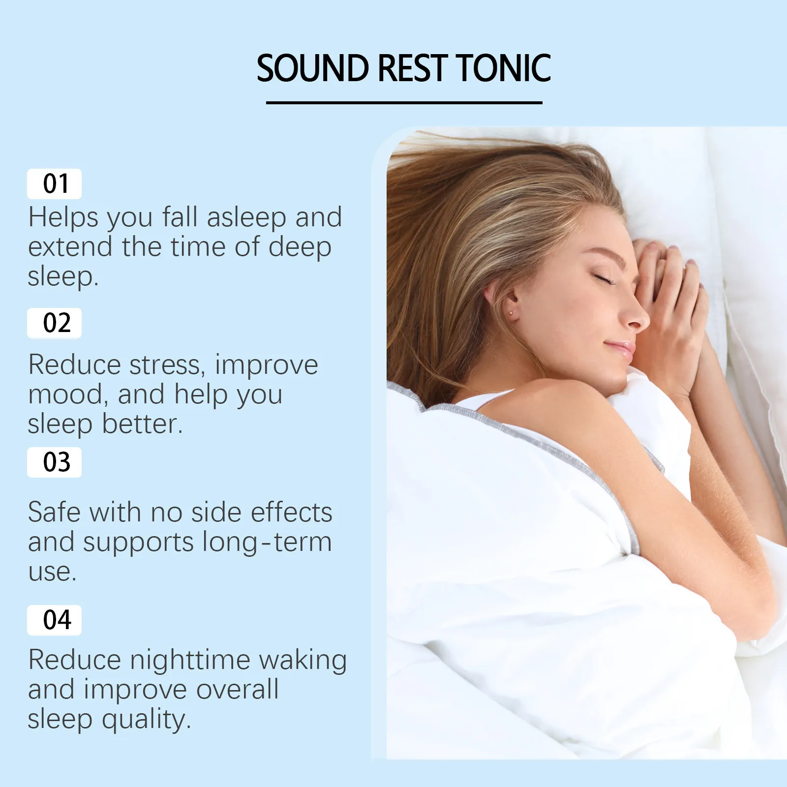As a dietary supplement, the Sound Rest Tonic is designed to complement balanced lifestyle habits such as maintaining consistent bedtimes, limiting screen exposure before sleep, and creating a comfortable sleeping environment.