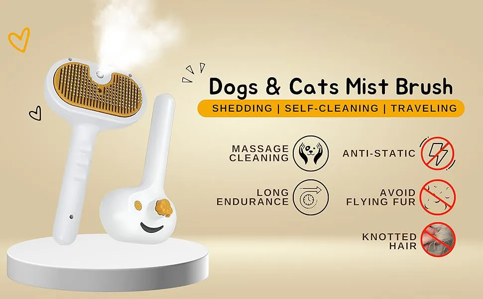 Say goodbye to the struggle of grooming your shedding dog! We know how frustrating it can be when your furry friend dislikes brushing or suffers from painful tangles and knots. That’s why we designed the 3-in-1 Steam Brush — a perfect blend of gentle brushing combined with a soothing cooling mist that softens your dog's coat and makes detangling effortless. It’s like giving your dog a relaxing spa day right in the comfort of your home, without the mess. When grooming is done, simply press a button to release the fur — no more painful pulling or plucking by hand. Plus, if baths aren’t your dog’s favorite, don’t worry! With regular use, the Chewie Steam Brush helps keep their coat clean, fresh, and wonderfully scented, so you can extend the time between baths and reduce grooming stress for both you and your pet.