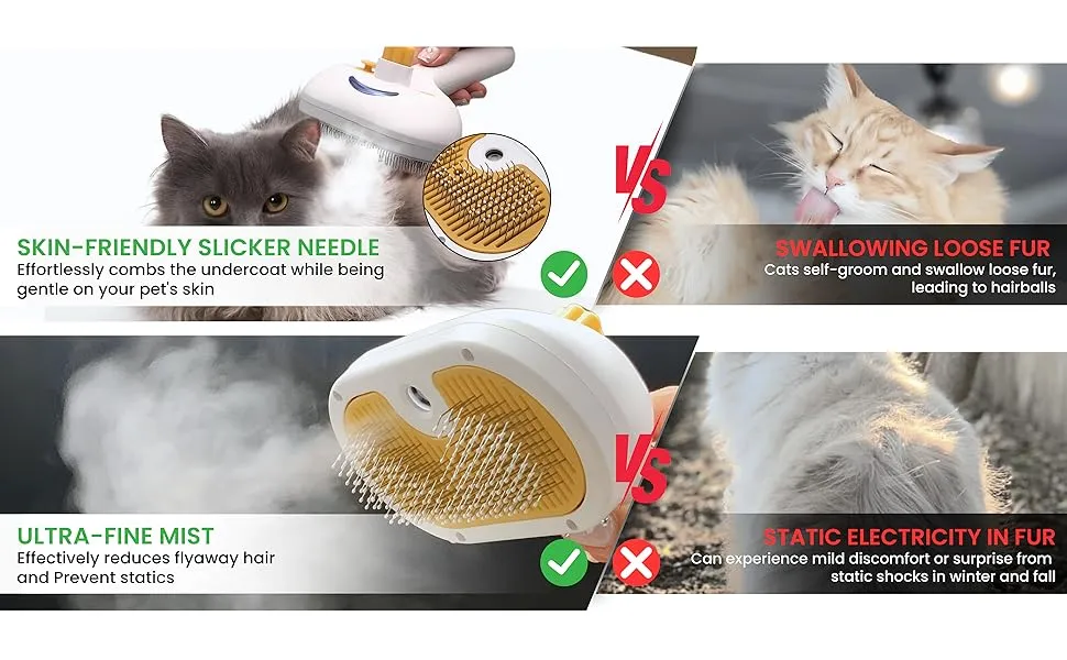 and dogs.Self-Cleaning Design: Easily remove collected hair with a simple press, keeping the brush clean and ready for the next use.Gentle