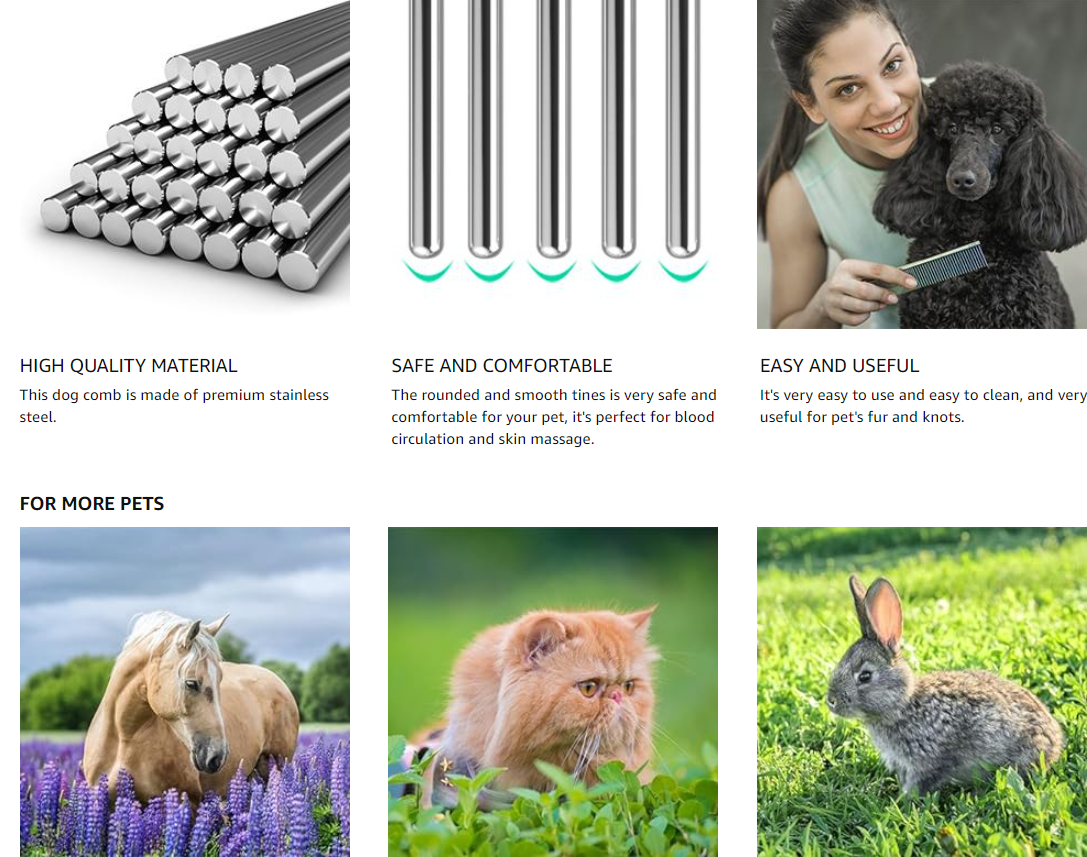 COMFORTABLE & SAFE - Rounded pin ends are gentle to the skin. This comb grooms and massages for a healthy coat, prevent snagging and pet injury.