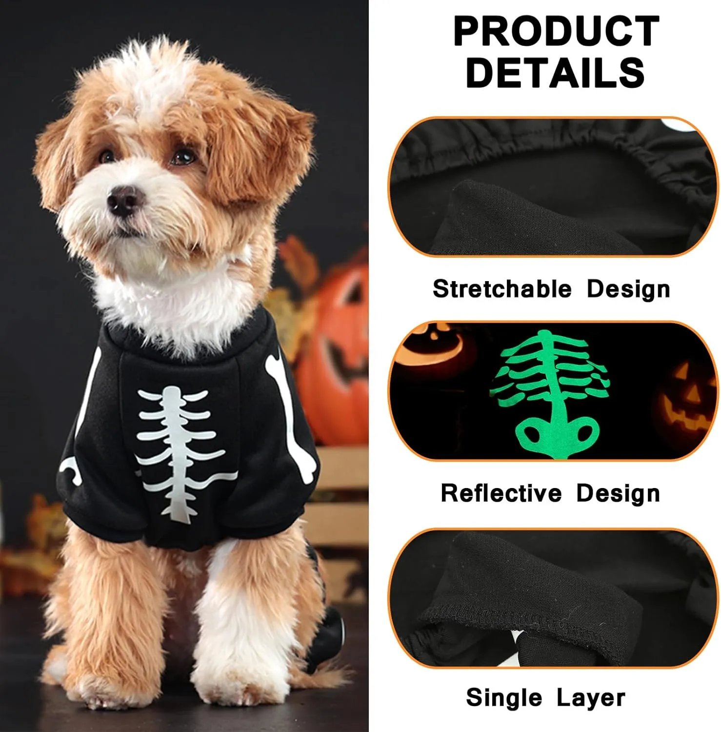 GLOW IN THE DARK DESIGN: This Halloween dog costume features a glow-in-the-dark skeleton design, making your small dog stand out during