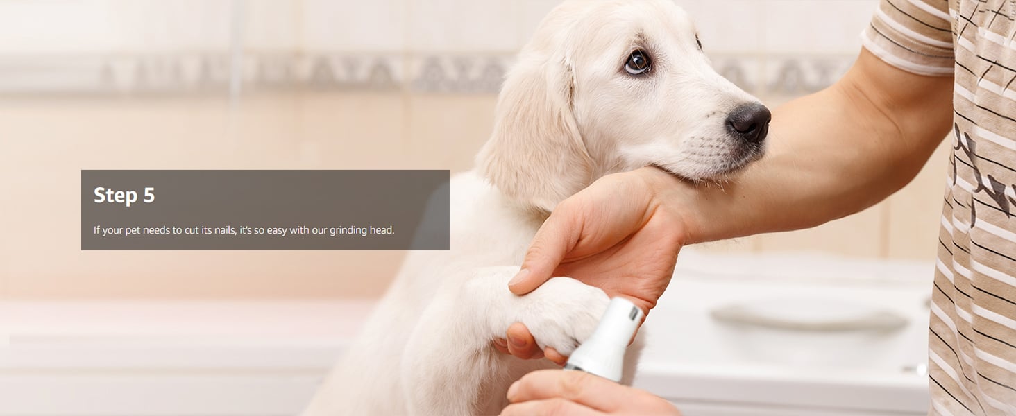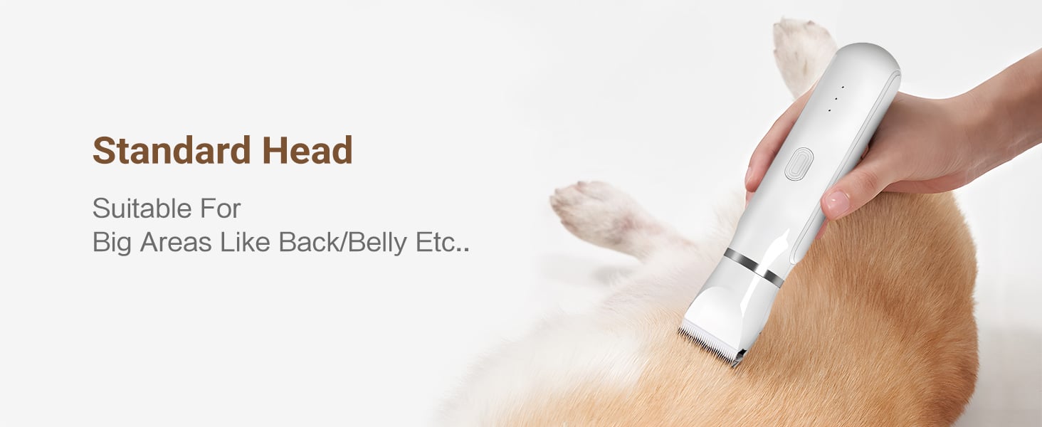 - Dog clipper kit with 4 blade heads - This dog grooming kit has 4 blade heads, which is a 4 in 1 dog clipper that can be used in the whole body. This dog clipper for grooming Including Standard head , Narrow head, Nail grinder and Detail head. standard head is suitable for large areas, such as back; Narrow head is suitable for foot; Nail grinder is suitable for nails; Detail head is suitable for small areas, such as faces and ears. Really achieve a multi -purpose machine.