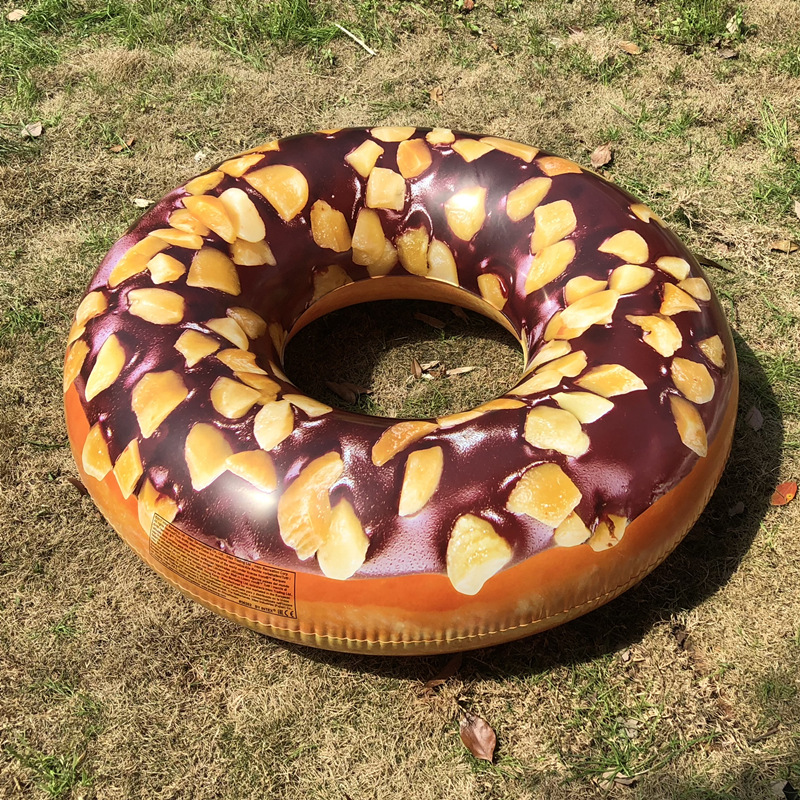 - Relax in style by floating on this comfortable and spacious donut swim ring.