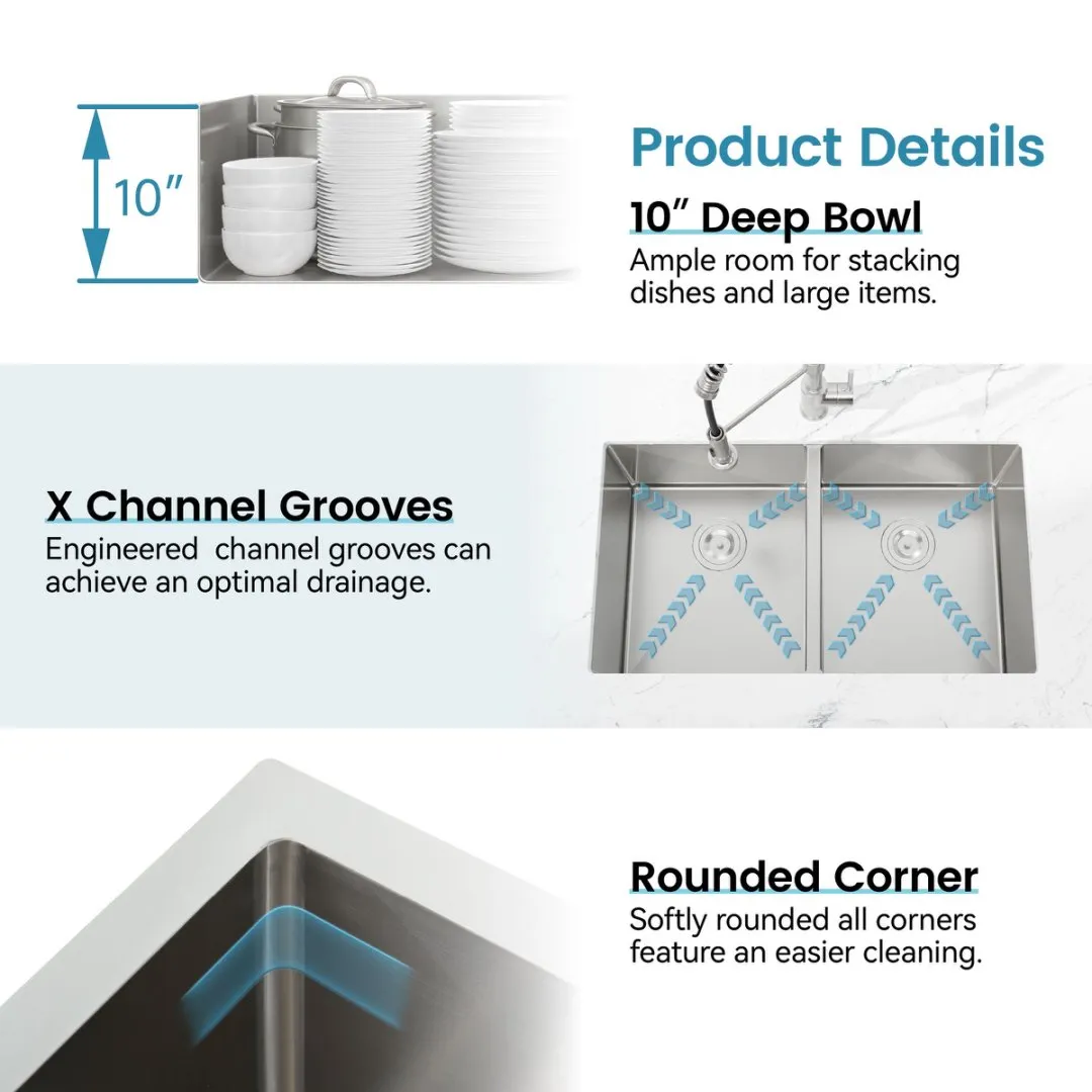 Durable and Long-Lasting: Made from high-quality stainless steel, this sink is built to last and withstand heavy daily use.