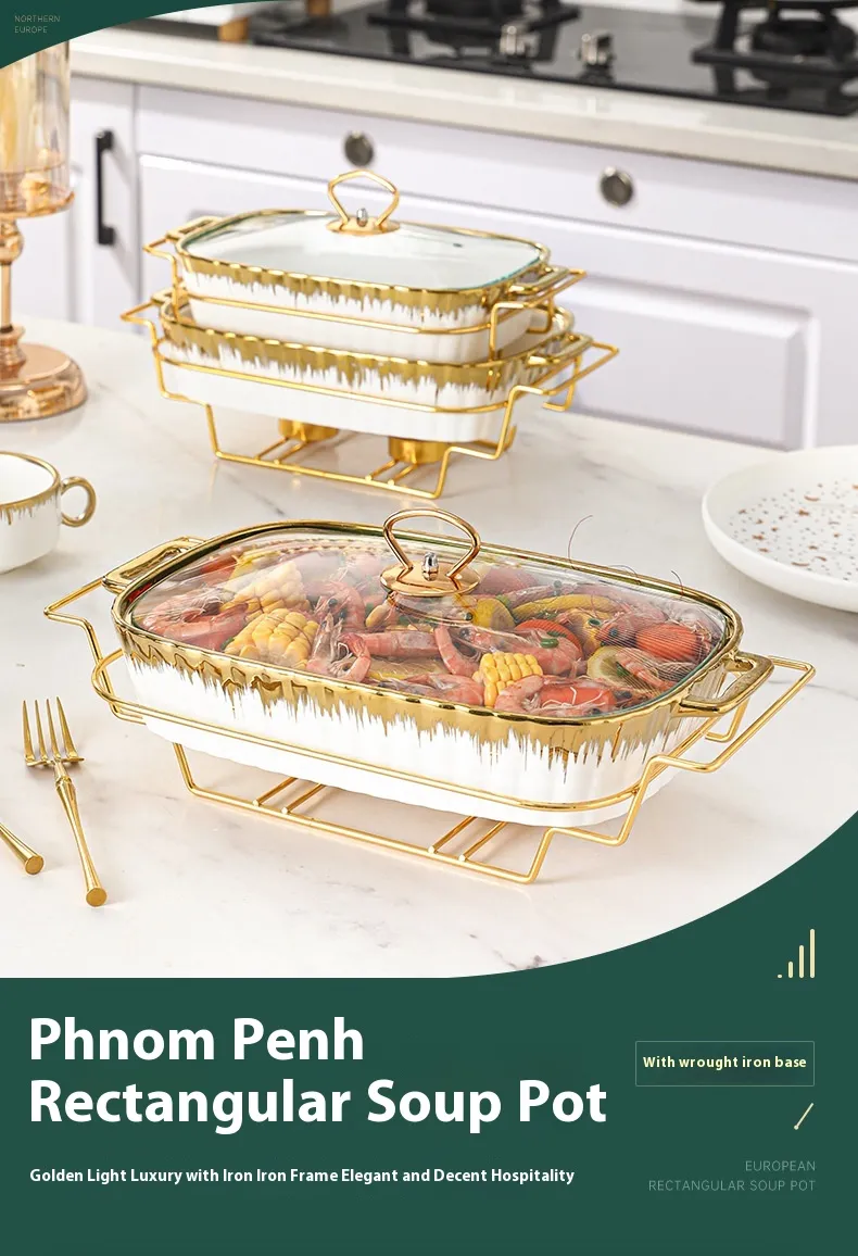Color: gold-plated rectangular soup pot -- white small size, gold-plated rectangular soup pot -- white medium size, gold-plated rectangular