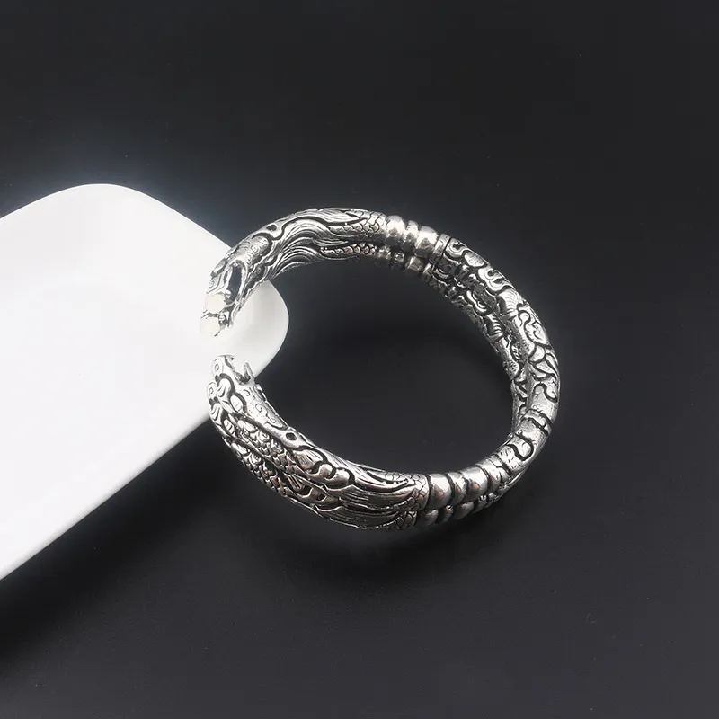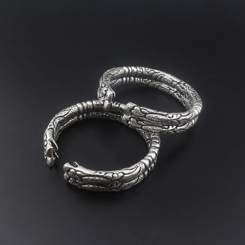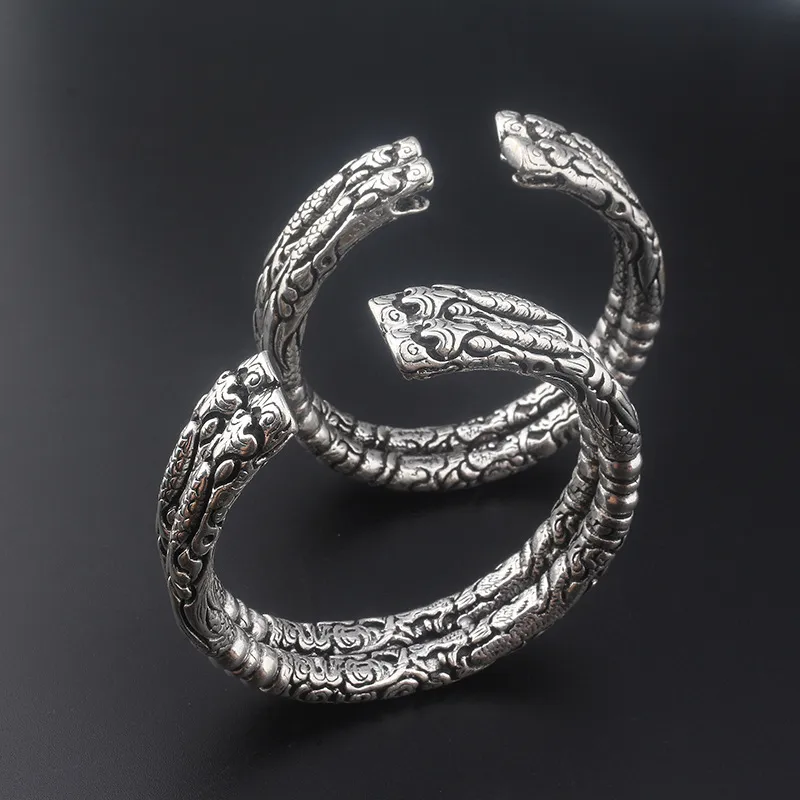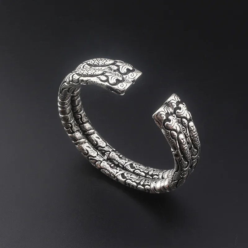 Double faucet bracelet Retro silver opening Buddha with the same paragraph Viking wolf head bracelet