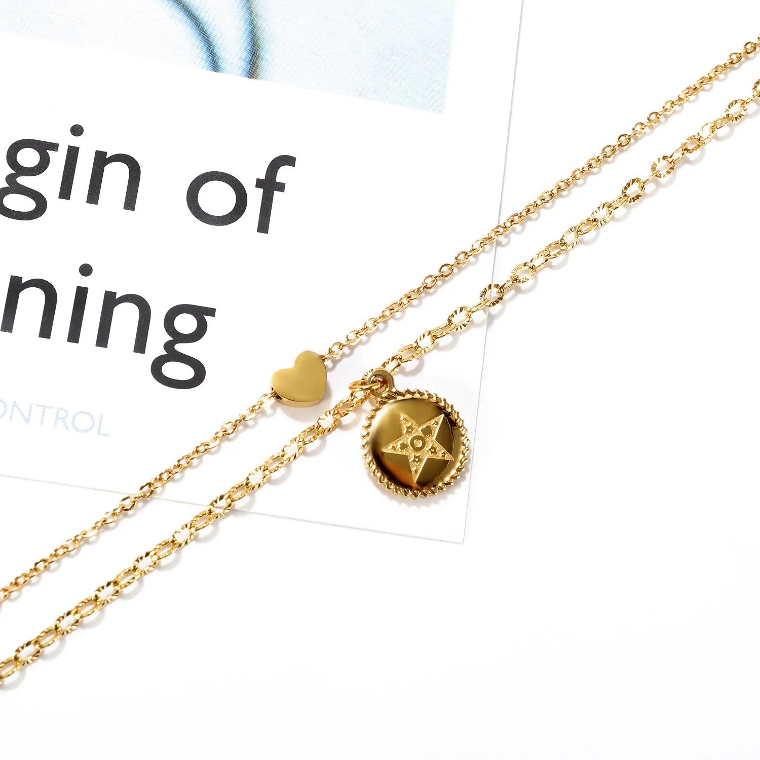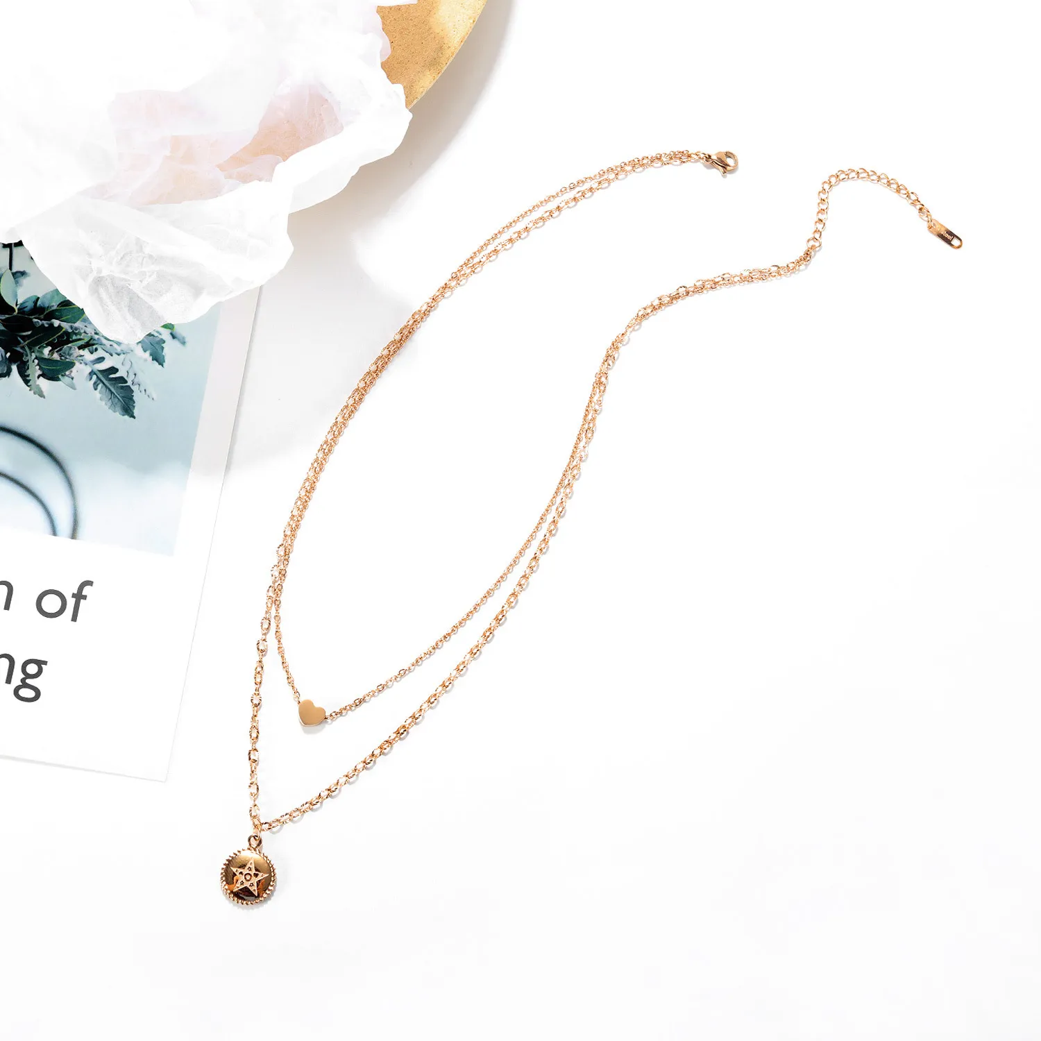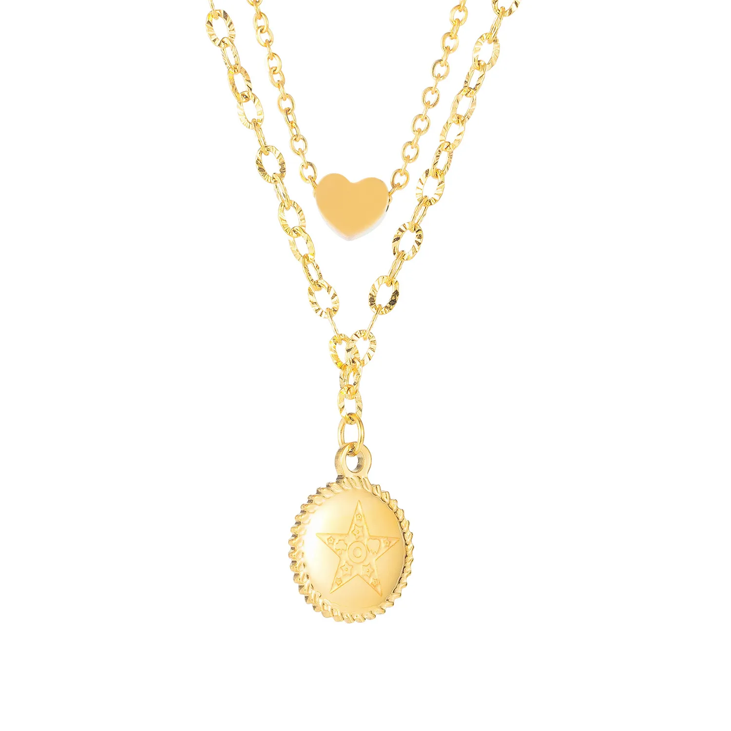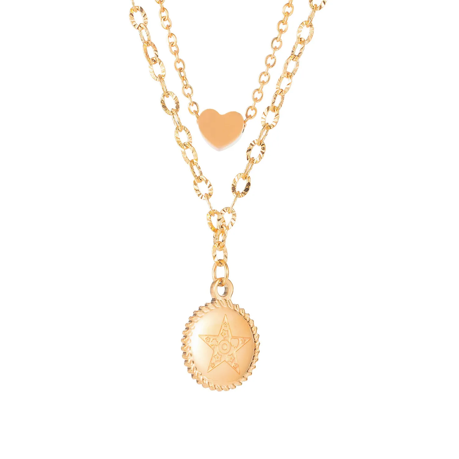 Double Heart Shaped Titanium Steel Pendant Pentagram Necklace