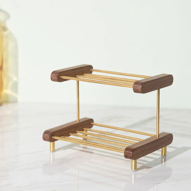 Crafted with a sleek copper finish, the rack adds a touch of elegance to any room. The double-layer design offers more space for your items, while the drain rack feature ensures that water or moisture is quickly drained away, keeping your items dry and organized. Its modern, minimalist design makes it the perfect addition to any home or office, providing both functionality and style.