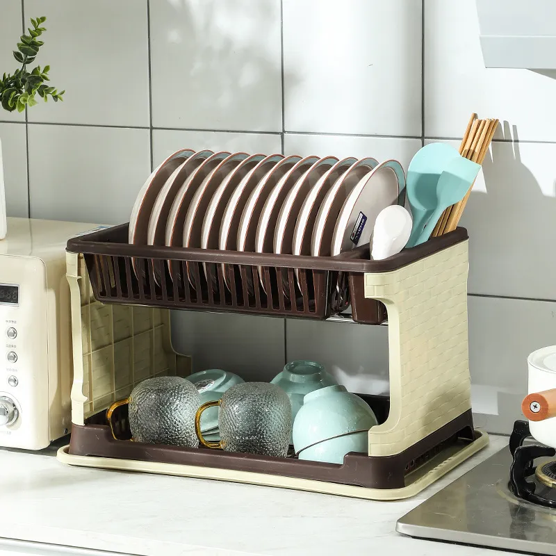 The Double Layer Drainage Kitchen Storage Rack is perfect for optimising vertical space.