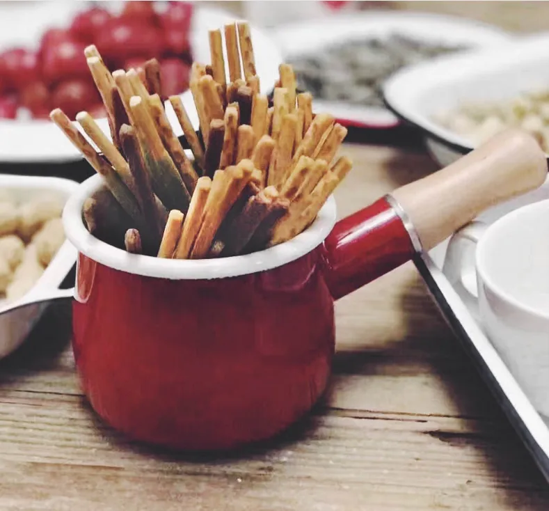 Color classification: 10cm blue double mouth milk pot, 10cm red double mouth milk pot filled with milk tea / desserts / crisp strips