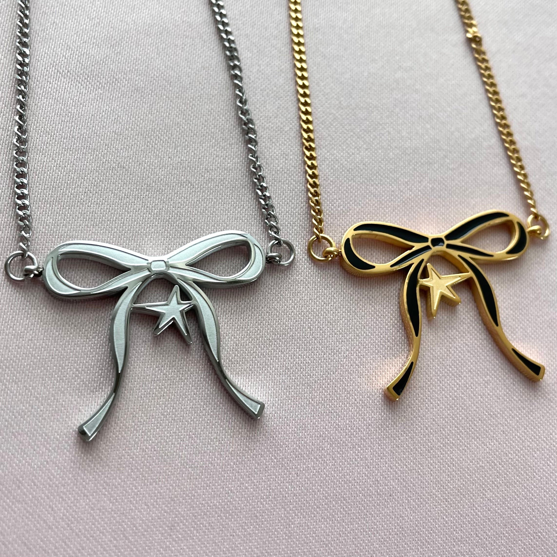 The Double-Sided Dripping XINGX Bowknot Necklace is an eye-catching piece that features an intricately designed bowknot pendant, draped with dripping details on both sides. The design draws inspiration from the elegance of a bowtie, combining it with a dripping effect that adds a modern twist to a classic motif. The bowknot symbolizes love, harmony, and loyalty, while the dripping effect adds a sense of movement and fluidity, bringing a contemporary, edgy feel to the piece.This double-sided design allows the pendant to shine from any angle, with the dripping details reflecting light and creating a dynamic, three-dimensional effect. The intricate craftsmanship ensures that the pendant retains its detailed beauty, making it a standout accessory for both formal and casual occasions.