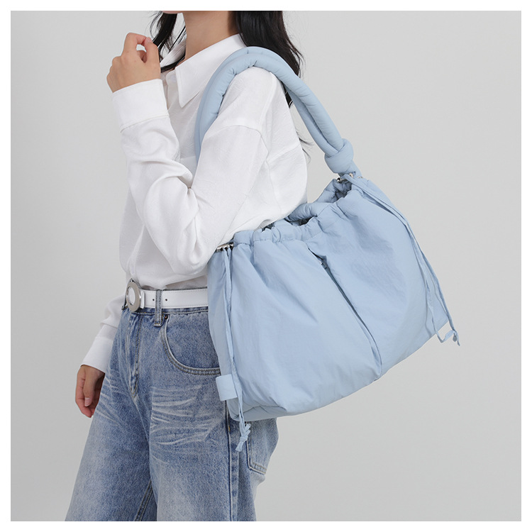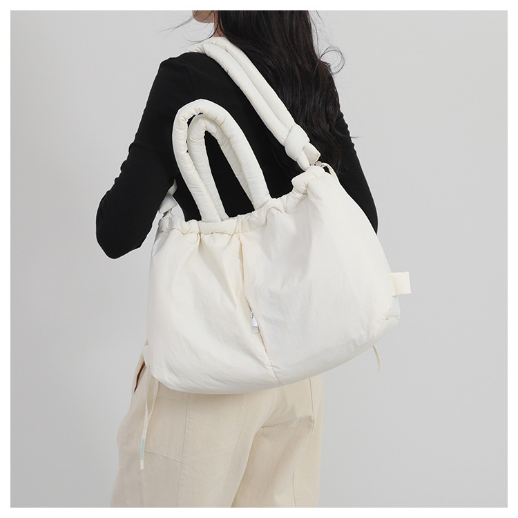 This large-capacity shoulder bag features multiple compartments and pockets to help keep you organized. The adjustable shoulder strap ensures that you can carry it comfortably whether you're using it as a crossbody or a shoulder bag. Its sturdy construction and high-quality zippers ensure long-lasting use, while the down cotton finish adds a soft touch, perfect for everyday wear. Its lightweight nature makes it an ideal choice for women who prefer convenience without compromising on style.
