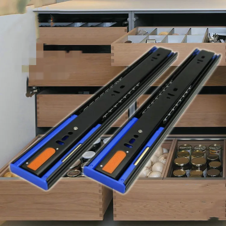 High-grade super thick three-section ball bearing drawer slide rail.
