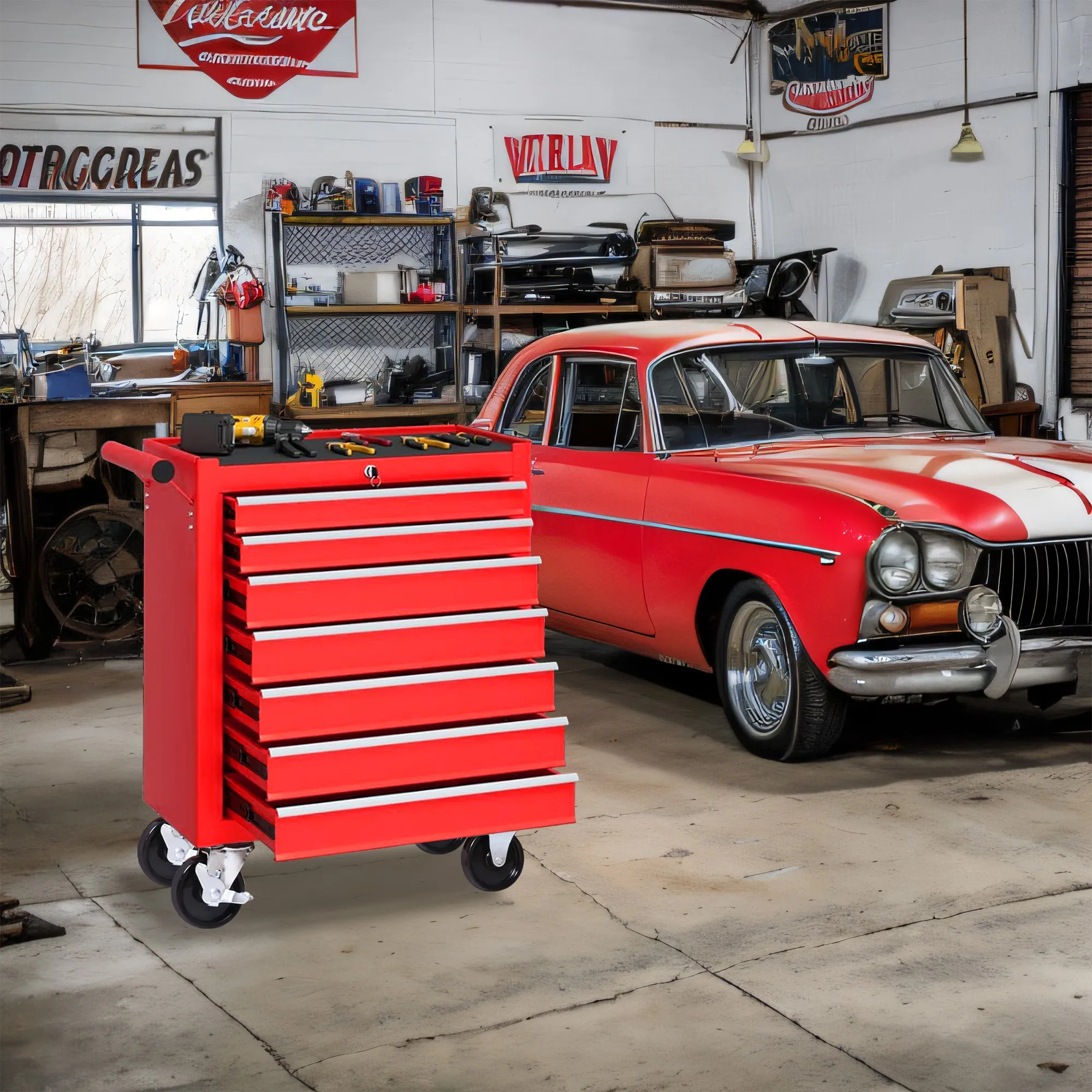- Large Storage Space: The tool cart is equipped with 5+2 drawers of different sizes, and a large storage space on the bottom. The top storage rack provides additional space for arranging the workshop accessories you need.