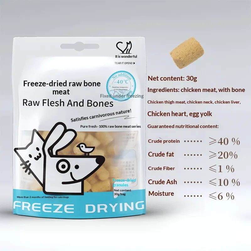 Overview:This freeze-dried pet snack is made from premium chicken breast, suitable for both cats and dogs, preserving the natural nutrients
