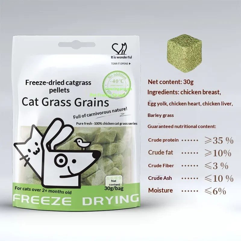 The Freeze-Dried Cat Grass Sticks are the ideal treat for your feline friend. Packed with natural ingredients like chicken breast, chicken liver, and fish oil, these sticks are designed to cater to the carnivorous nature of cats. Full of nutritious components, they provide your cat with an irresistible, tasty snack that promotes overall health and well-being.