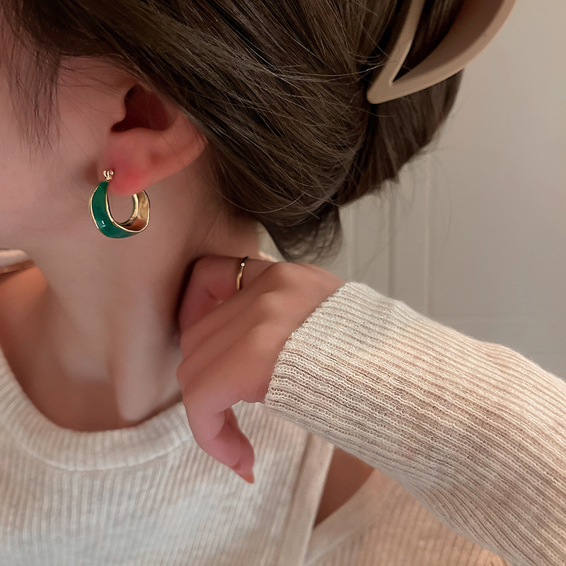 Dripping Glaze Geometric Irregular Round Earrings