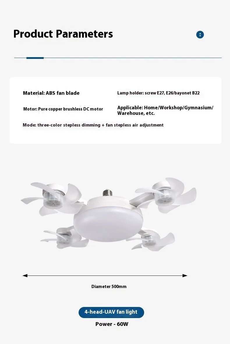 Energy-Efficient: LED lighting ensures lower energy consumption, making the Drone Fan Light both