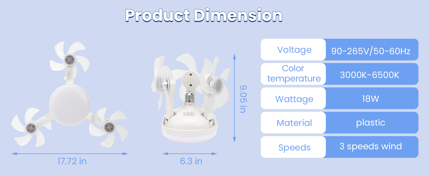 - 🍃【2-in-1 Ceiling Fan with Lights】: This LED socket fan light acts as both a fan and an ultra-bright LED light, allowing you to illuminate the room and promote air circulation without a separate product. This LED drone fan light has a diameter of 19.69 inches from blade tip to blade tip and weighs a compact 1.1 pound.