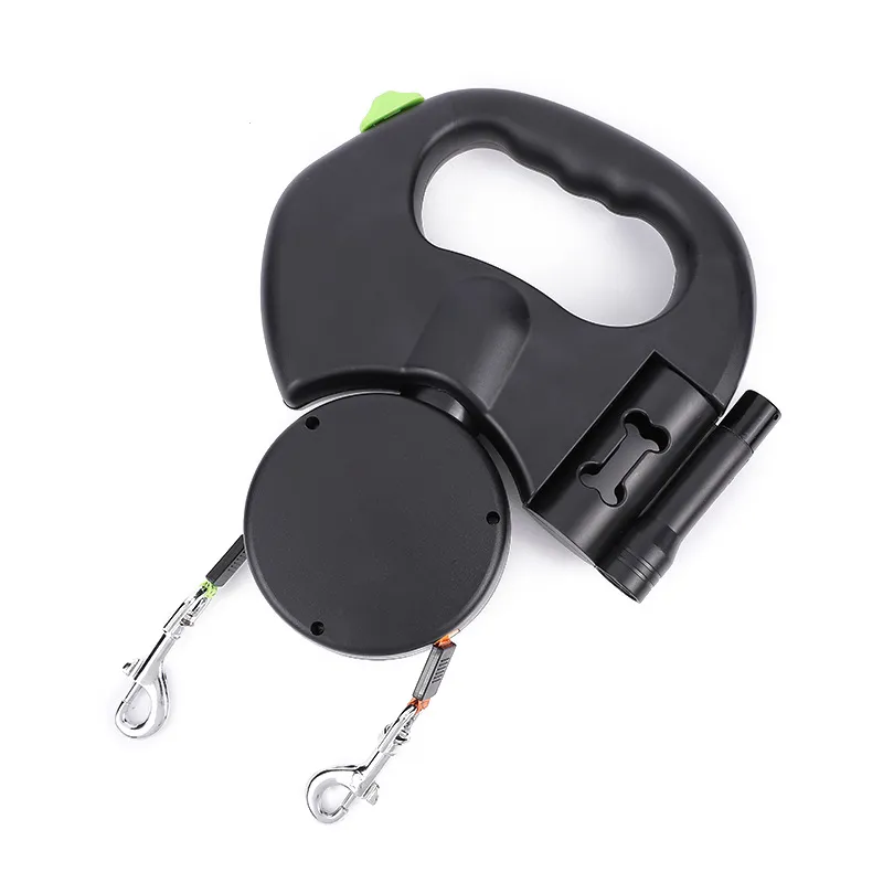 One-to-two automatic telescopic traction rope, easy to walk two dogs.
