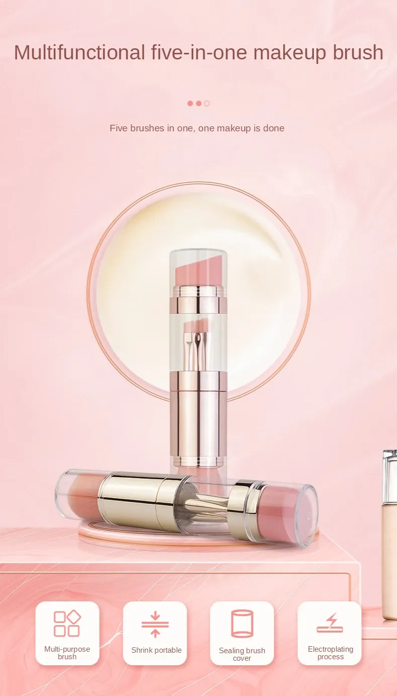 5-in-1 makeup brushes, multifunctional makeup brushes, portable makeup brushes, makeup brush set, foundation eyeshadow puff, cosmetic brush cleaning bowl, makeup tools, versatile makeup brushes