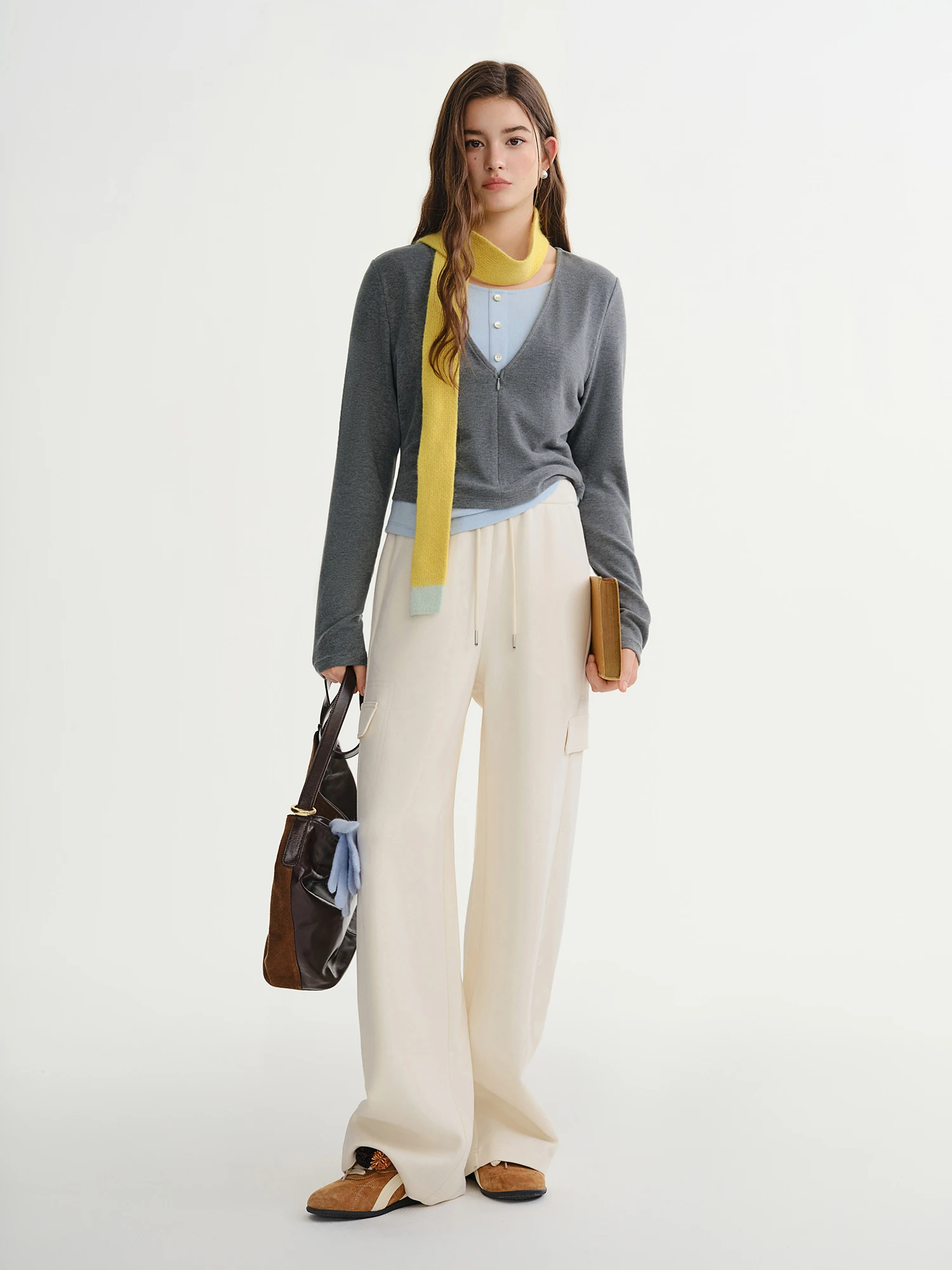 DUSHU Plus-size Women's Oversized Wide-leg Drawstring Cargo Pants Winter 2025 Collection Relaxed Rhythm Casualwear Winter New