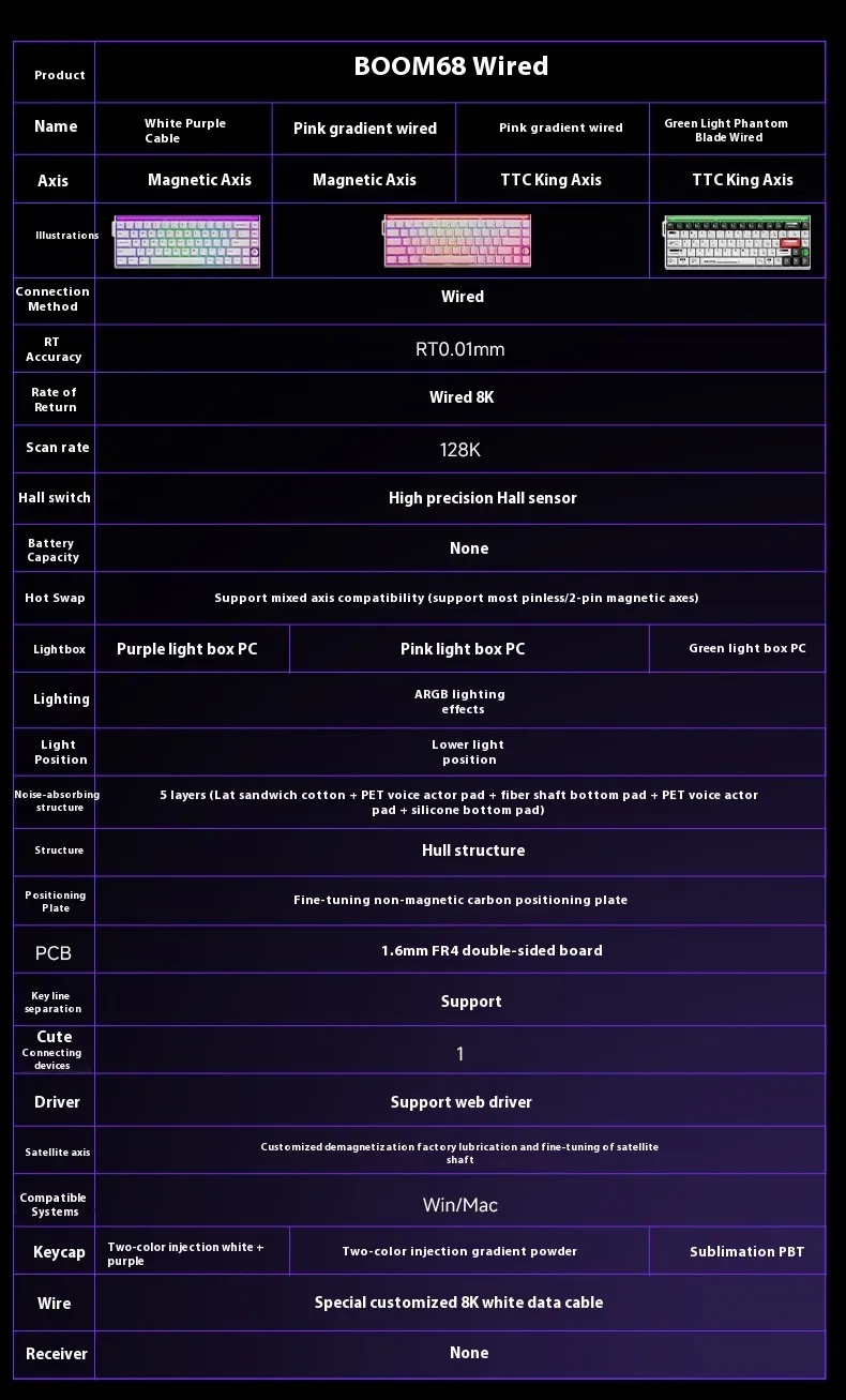 Color: BOOM68-magnetic spirit axis-White & purple [Wired],BOOM68-magnetic Emperor axis-gradually varied pink [Wired],BOOM68-TTC Emperor