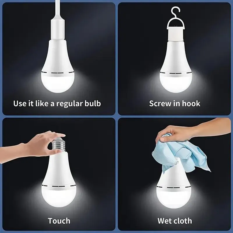 rechargeable light bulbs work as normal A19 LED bulbs and can self-charging during daily use. Each emergency light bulb built-in 1200mAh battery backup, can provide lighting for 4-6 hours with no electricity during power outage. 4 combo pack design for 2-4 days lighting needs.