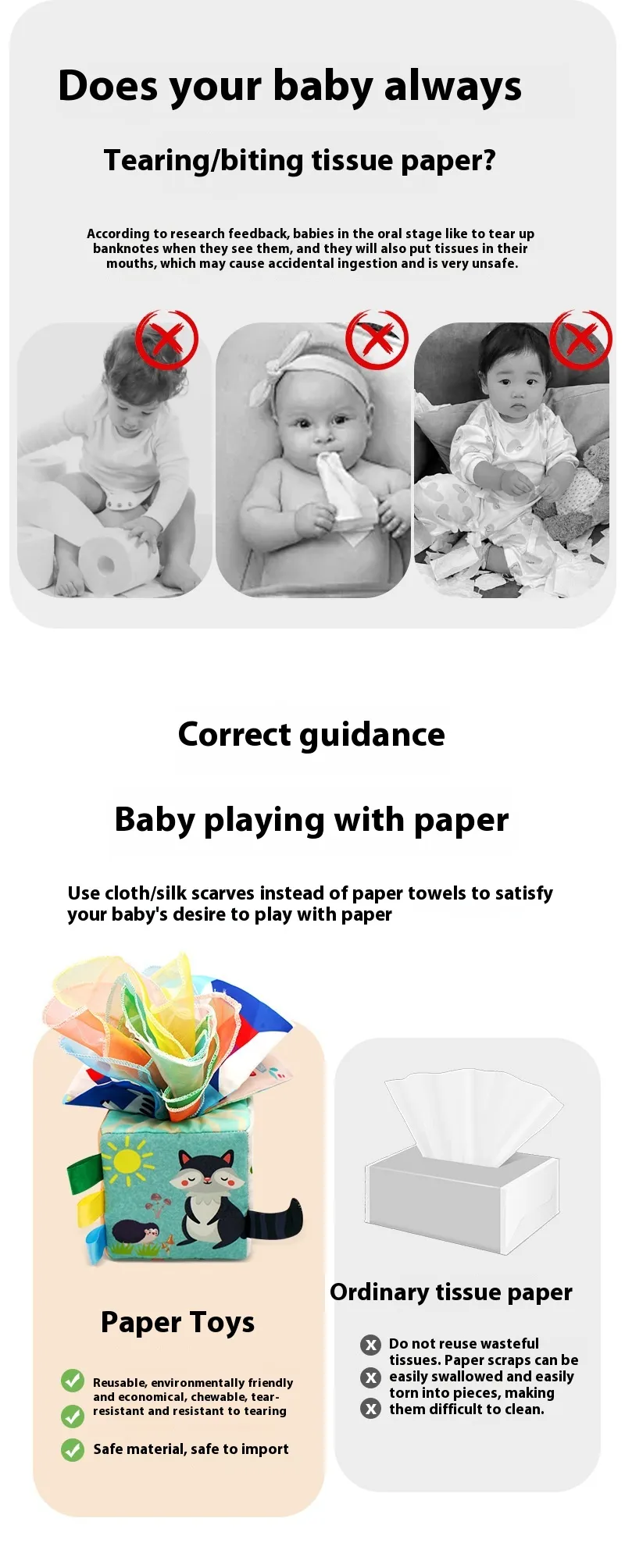 Tear-Proof Paper for Safety: The tissues used in the toy are made from durable, tear-proof material, ensuring they can
