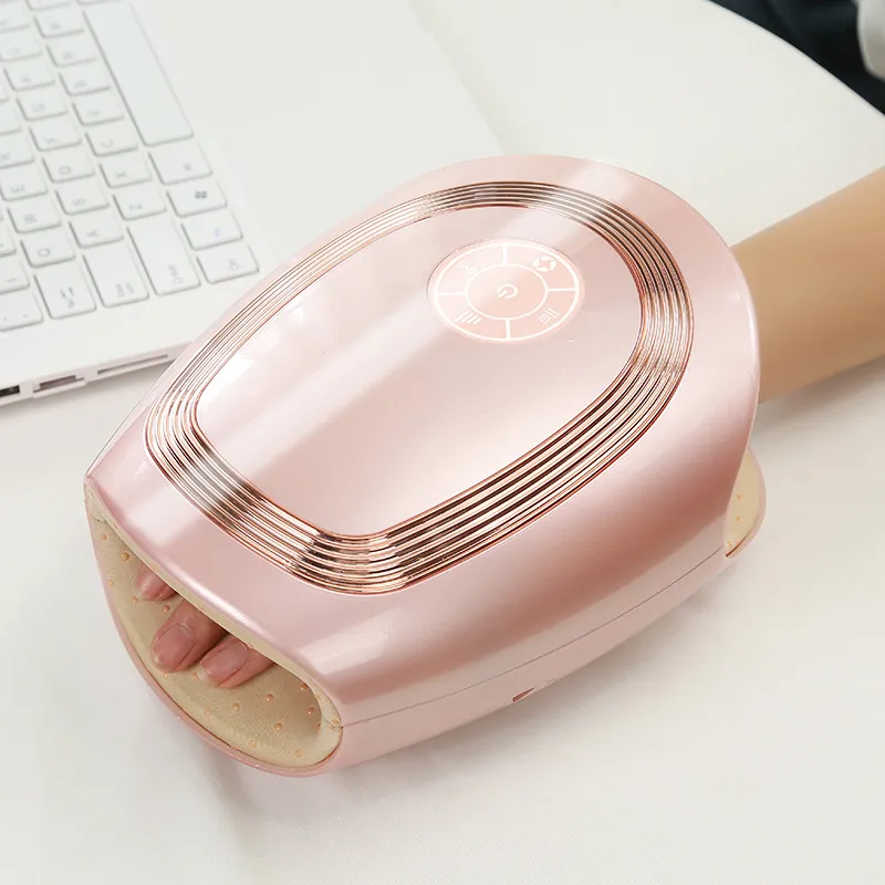 The hand massager uses airbag technology to gently inflate and deflate, mimicking the sensation of a professional hand massage to relieve
