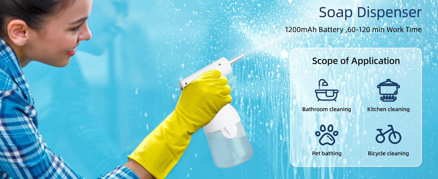 【Multi-Purpose】:Soap Dispenser can be used for kitchen cleaning, bathroom cleaning, pet bathing, bike cleaning, a wide range of applications and help us to complete cleaning tasks efficiently.