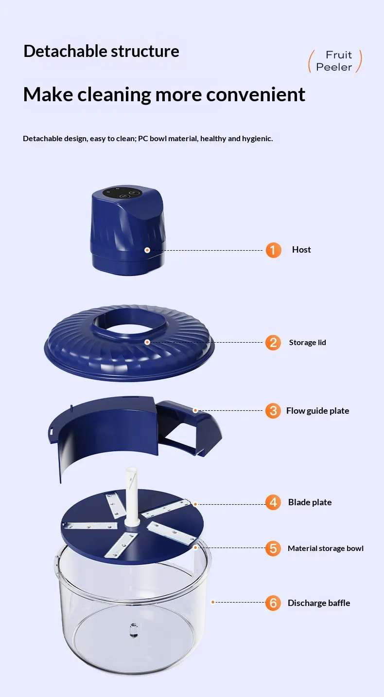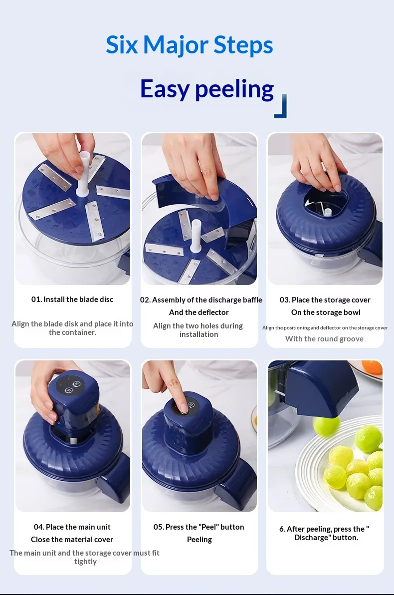 - Efficient Electric Peeler: Automatically peels fruits and vegetables with minimal effort.