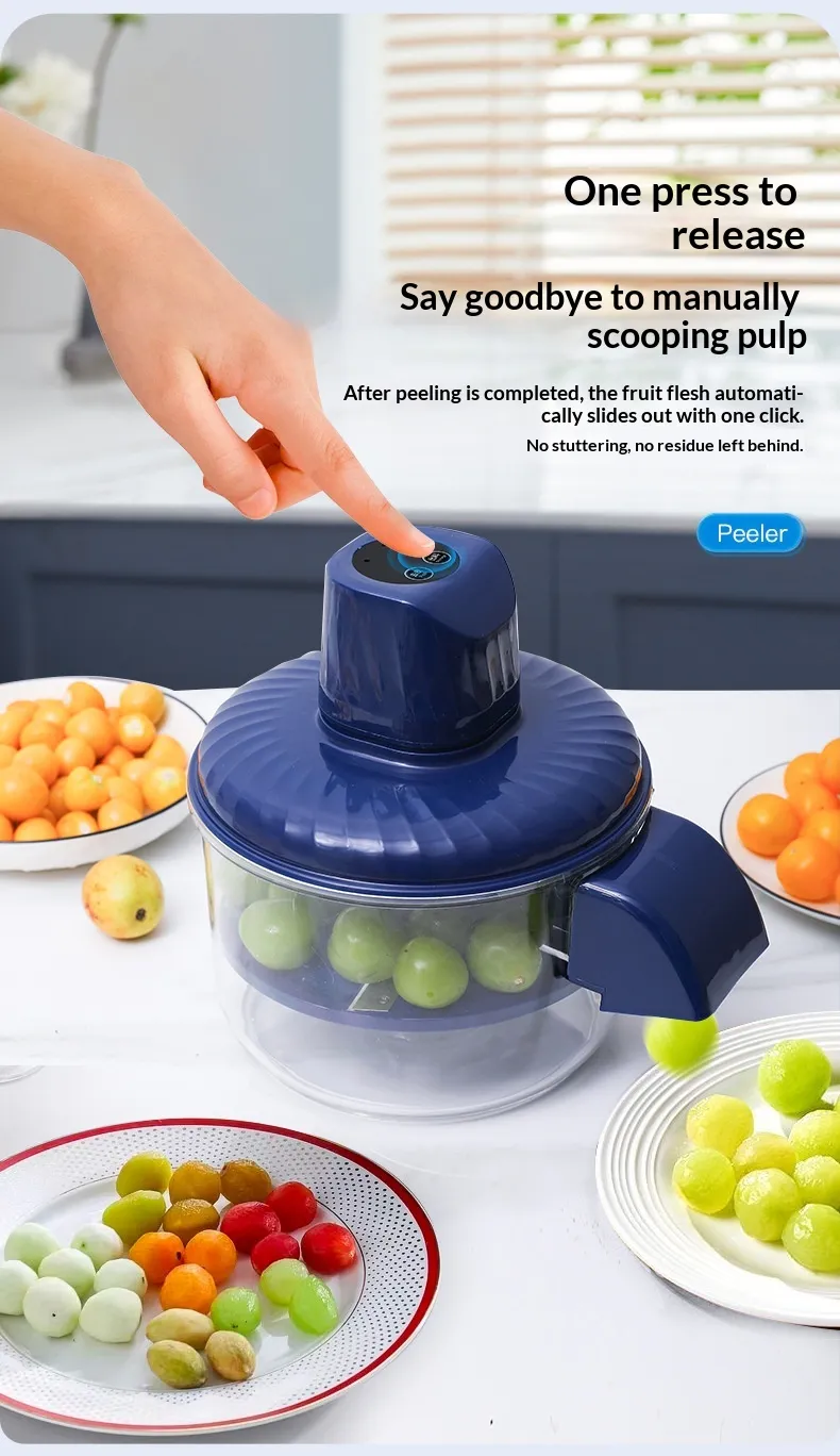 - Efficient Peeling: The Electric Grape Peeling Machine features a fully automatic design with one-touch peel and eject buttons for effortless operation. With a single press, it quickly starts the peeling process and automatically releases the peeled fruits—no manual emptying needed. In about 20 seconds, it easily handles small fruits, delivering a smooth, efficient, and time-saving peeling experience for both home and commercial use