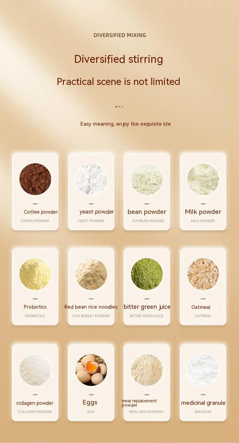 The self-stirring mechanism is especially useful for beverages that require thorough mixing, such as: