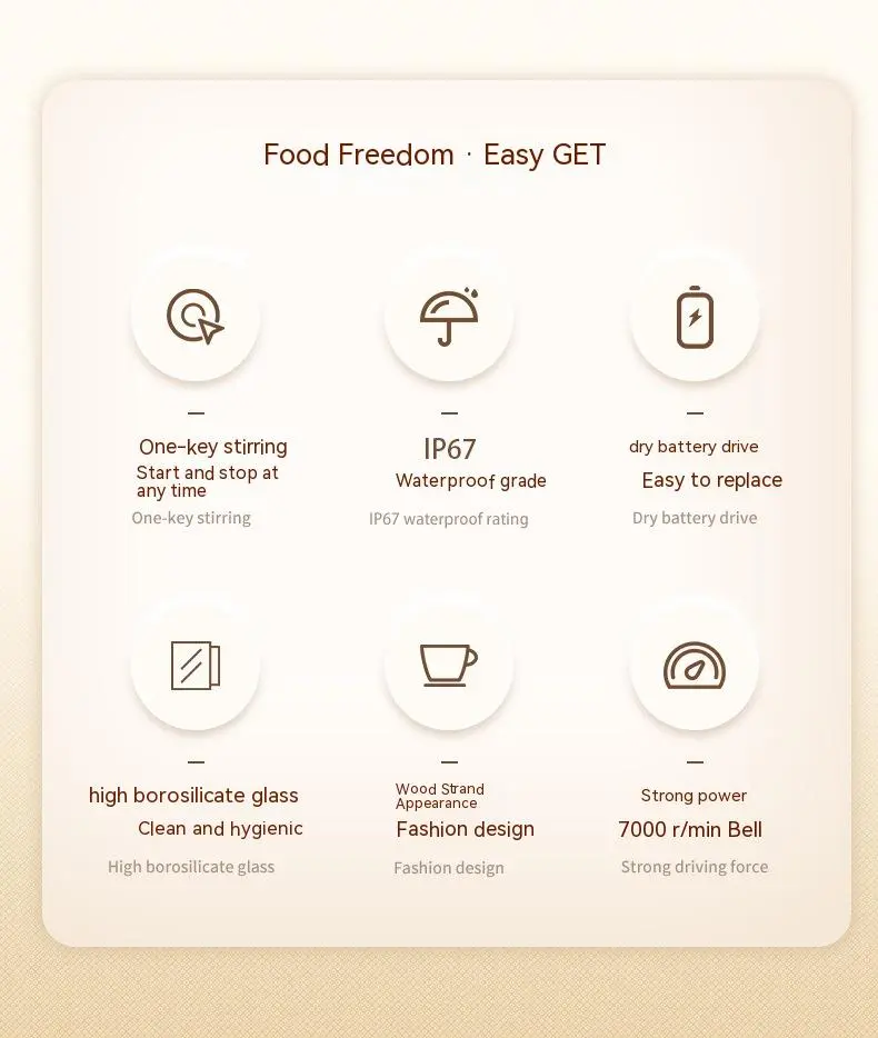 Such a convenient product! The one-click stirring feature works perfectly, and it’s great for making my protein shakes every morning. Easy