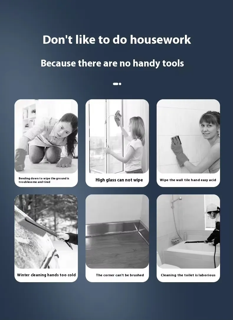 The handle is designed for a comfortable grip, reducing fatigue during extended cleaning sessions. Its waterproof construction ensures safe use in wet environments like bathrooms and kitchens.