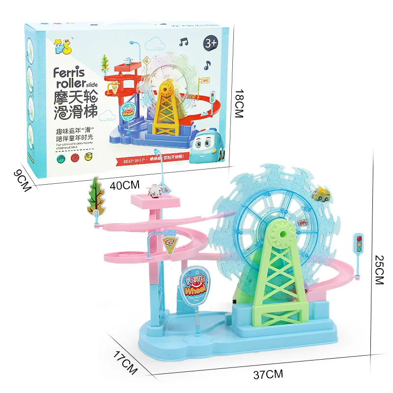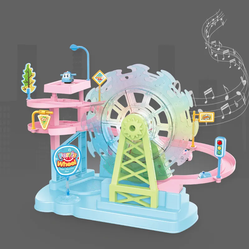 This toy features built-in music and light effects that add an exciting visual and auditory experience for children. As the track slide operates, the colorful lights flash and dance to the rhythm of the music, creating a vibrant atmosphere. The combination of sound and light stimulates the child’s sensory development and adds extra fun to their playtime.