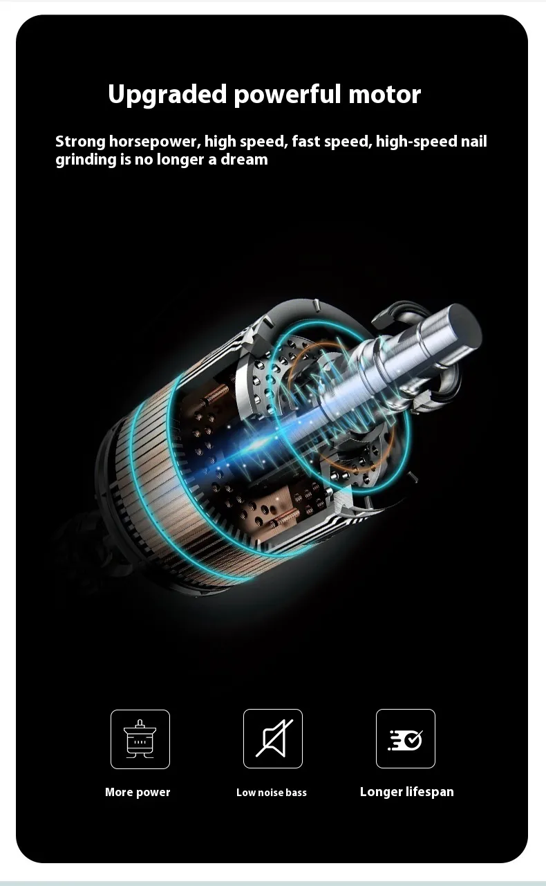Electric Nail Grinding System: Files nails gently for better control and smoother results.